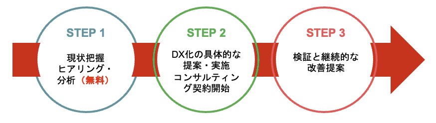 ITリテラシーの壁を取り除き、実際にDX化を進めながら企業の成長を支援することを目的としています。