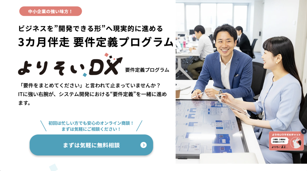この度、DXやシステム導入を検討されている企業様向けに、要件定義に特化した伴走型支援サービス